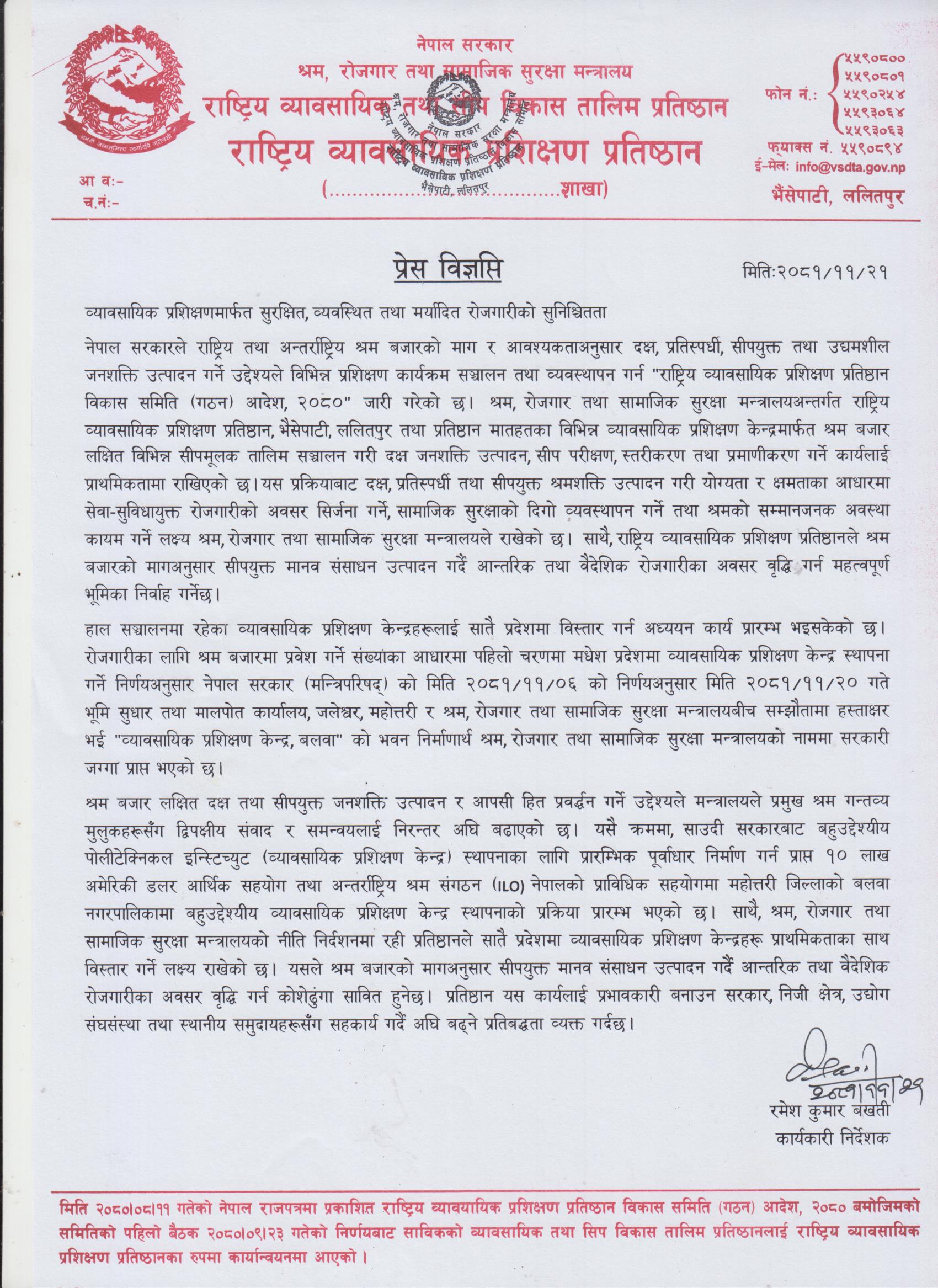 राष्ट्रिय व्यावसायिक प्रशिक्षण प्रतिष्ठान विकास समिति (गठन) आदेश २०८०
