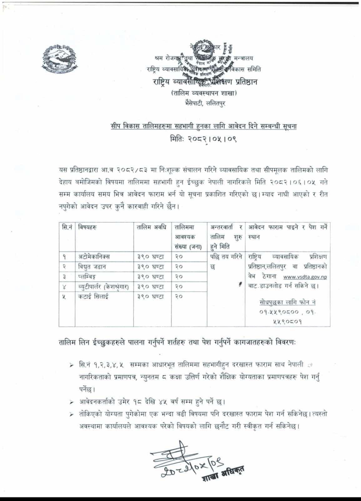 सीप विकास तालिमहरुमा सहभागी हुनका लागि आवेदन दिने सम्वन्धी सूचना