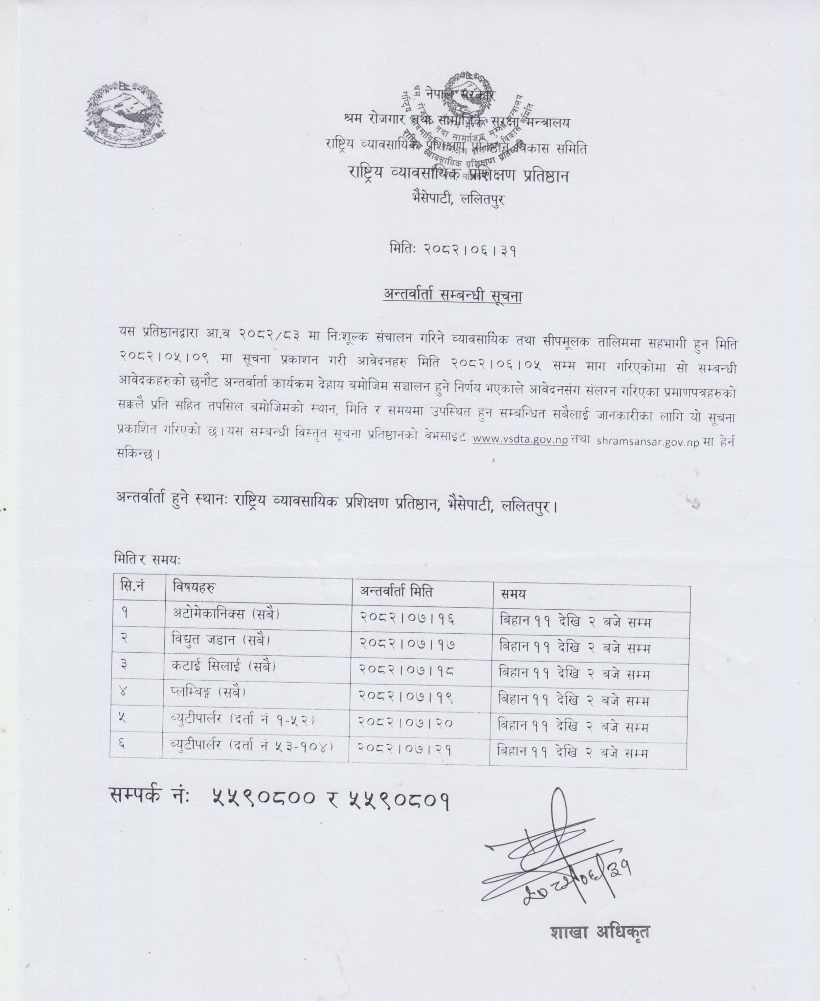 सीपमूलक तालिमको अन्तर्वार्ता सम्वन्धी सूचना