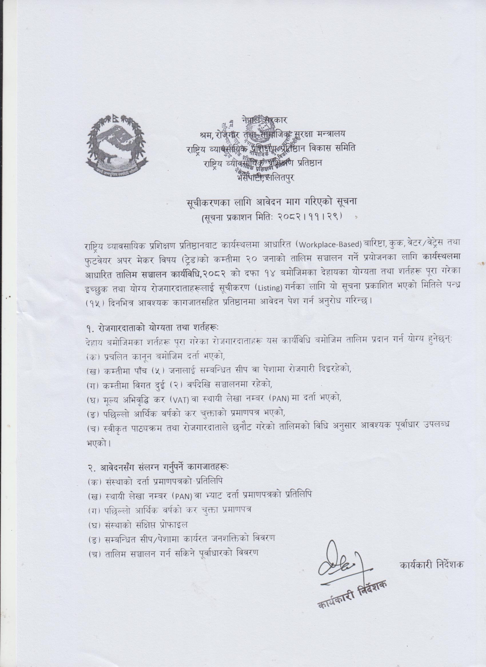 कार्यस्थलमा आधारित एप्रन्टिसिप तालिमको लागि आशयपत्र पेश गर्ने सम्वन्धी सूचना ।