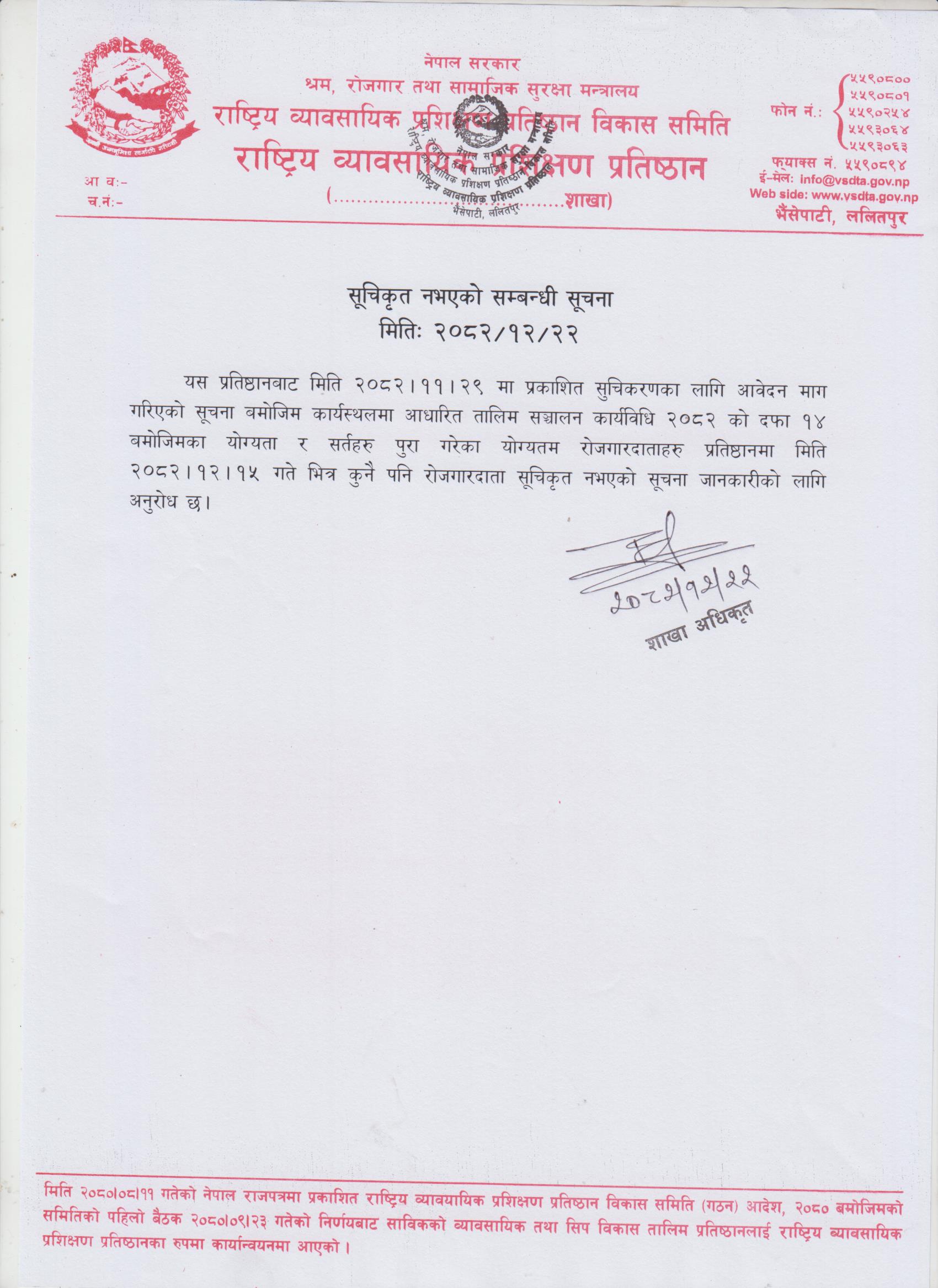 प्रशिक्षक प्रशिक्षण कार्यक्रम मिति 2079/01/15 को सूचनामा भूलबश छुटेका आवेदकहरुको हकमा अन्तरवार्ता सम्बन्धी सूचना